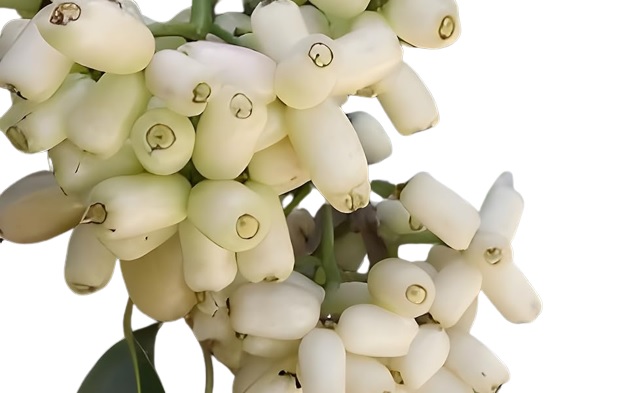 A variant of the tree produces white coloured fruit,commonly known as white jamun. Grafted or Buded white jamun fruited after 1 year. The white jamun fruit has a combination of sweet, mildly sour and astringent flavour and tastes best when the fruits are soaked in salt water for 30 minutes. Raw fruits are used for for making wine and vinegar. The juice of ripe fruit is used for preparing jams, jelly, sauces and other beverages. The seeds of Jamun are used in various alternative medicines like Ayurveda, Unani and Chinese medicine for treating digestive ailments like dysentry.